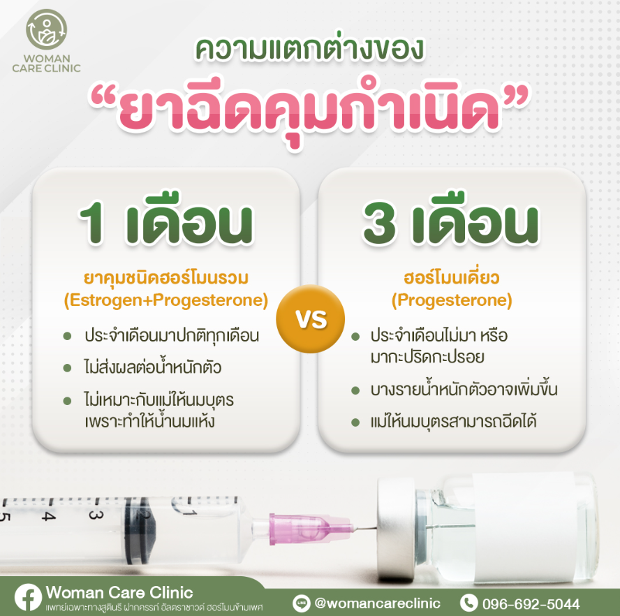 • ยาคุมแบบฉีด แบบรายเดือน เข็มละ 450 บาท