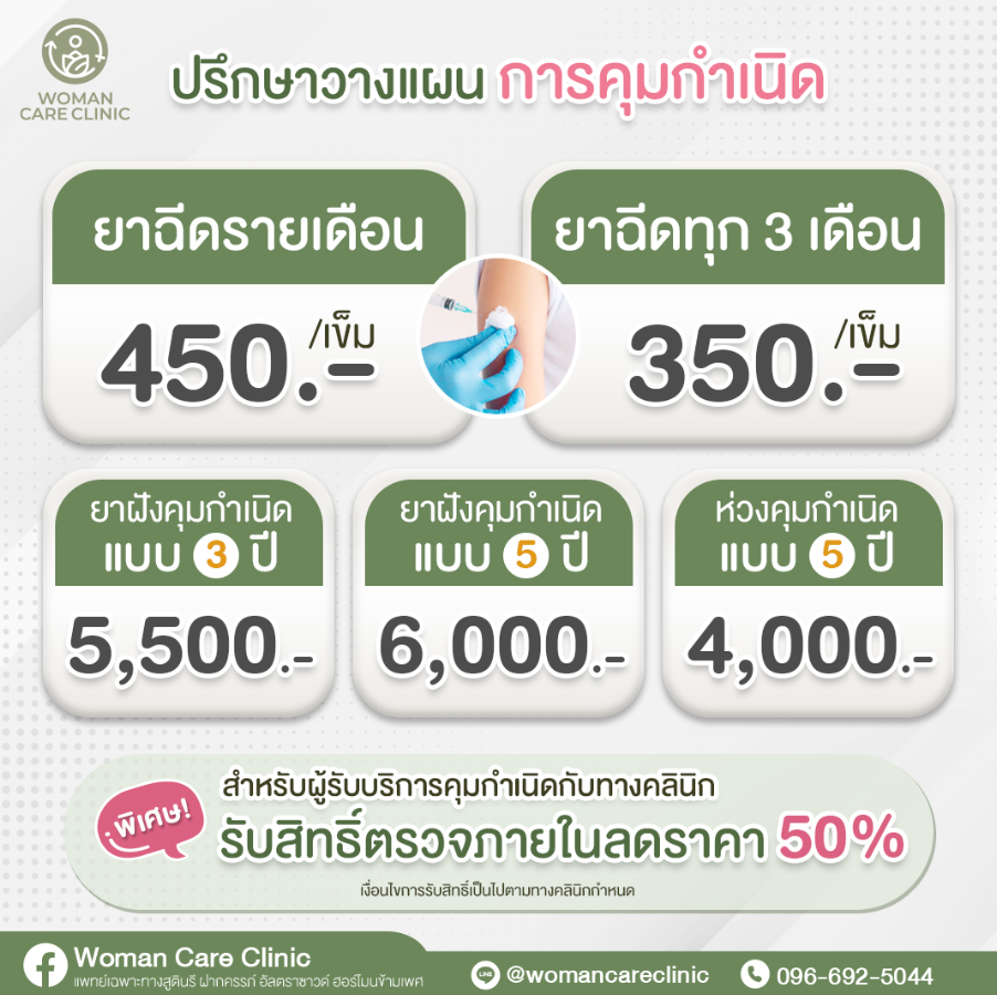 Woman Care Clinic ของเรา ดูแลโดยคุณหมอเฉพาะทางด้านสูตินรีเวชกรรมค่ะ สามารถให้บริการการวางแผนครอบครัวได้ครบทุกชนิด สำหรับคุณผู้หญิงที่ยังไม่มั่นใจว่าตนเองเหมาะกับแบบไหน มีโรค หรือมียาประจำตัว การปรึกษาแพทย์เฉพาะทางฮอร์โมน จะช่วยให้เลือกได้อย่างปลอดภัย และผลข้างเคียงน้อยนะคะ