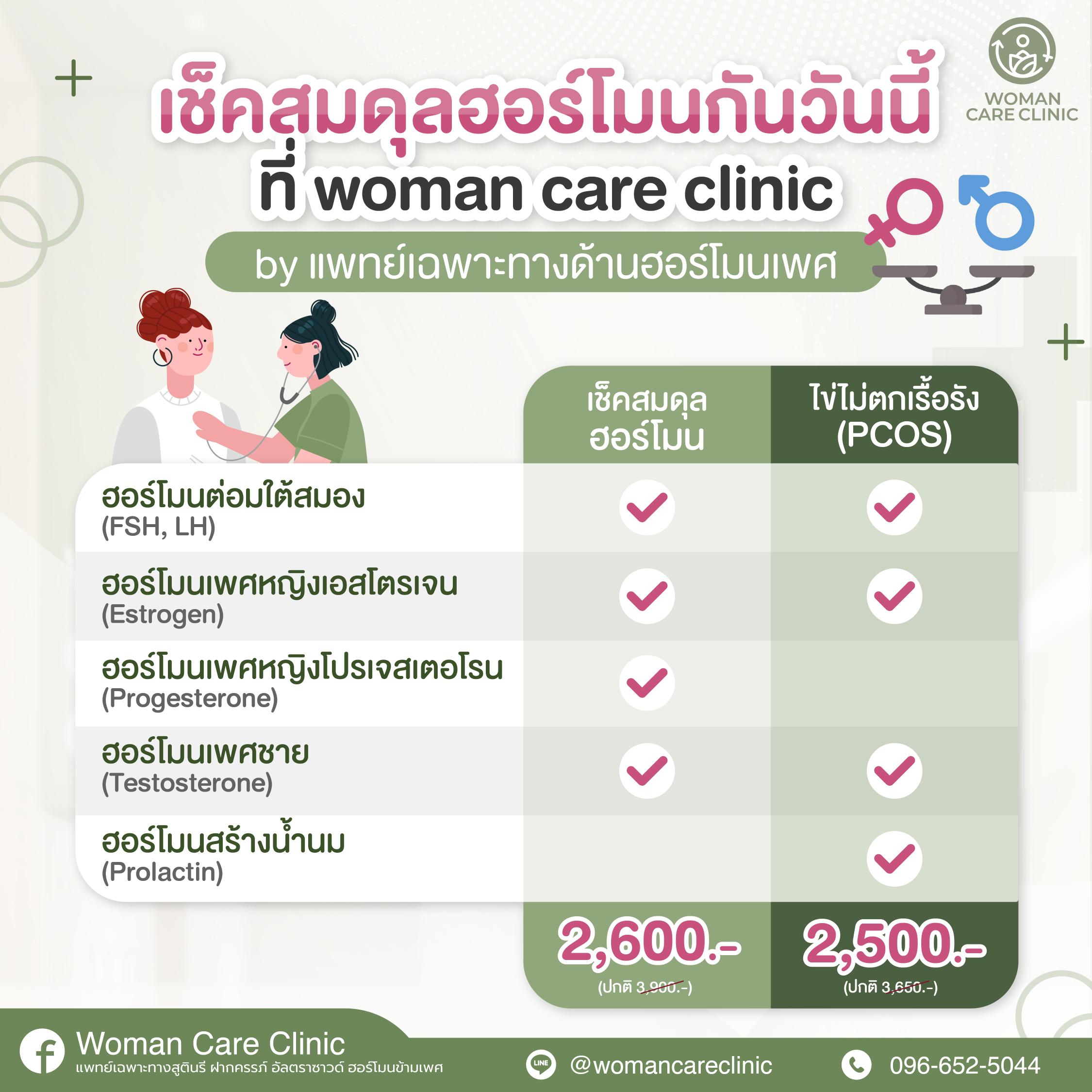 Woman Care Clinic ของเรา ดูแลโดยคุณหมอเฉพาะทางด้านฮอร์โมนผู้มากประสบการณ์ และให้การรักษาเป็นรายบุคคลอย่างตรงจุดและครอบคลุมค่ะ หากสาวๆท่านใดสนใจเข้ารับการรักษา หรือมีคำถามเพิ่มเติม สามารถทักสอบถามเพื่อทำนัดผ่านทาง เบอร์ 096-692-5044 หรือ line : @womancareclinic (มี@)